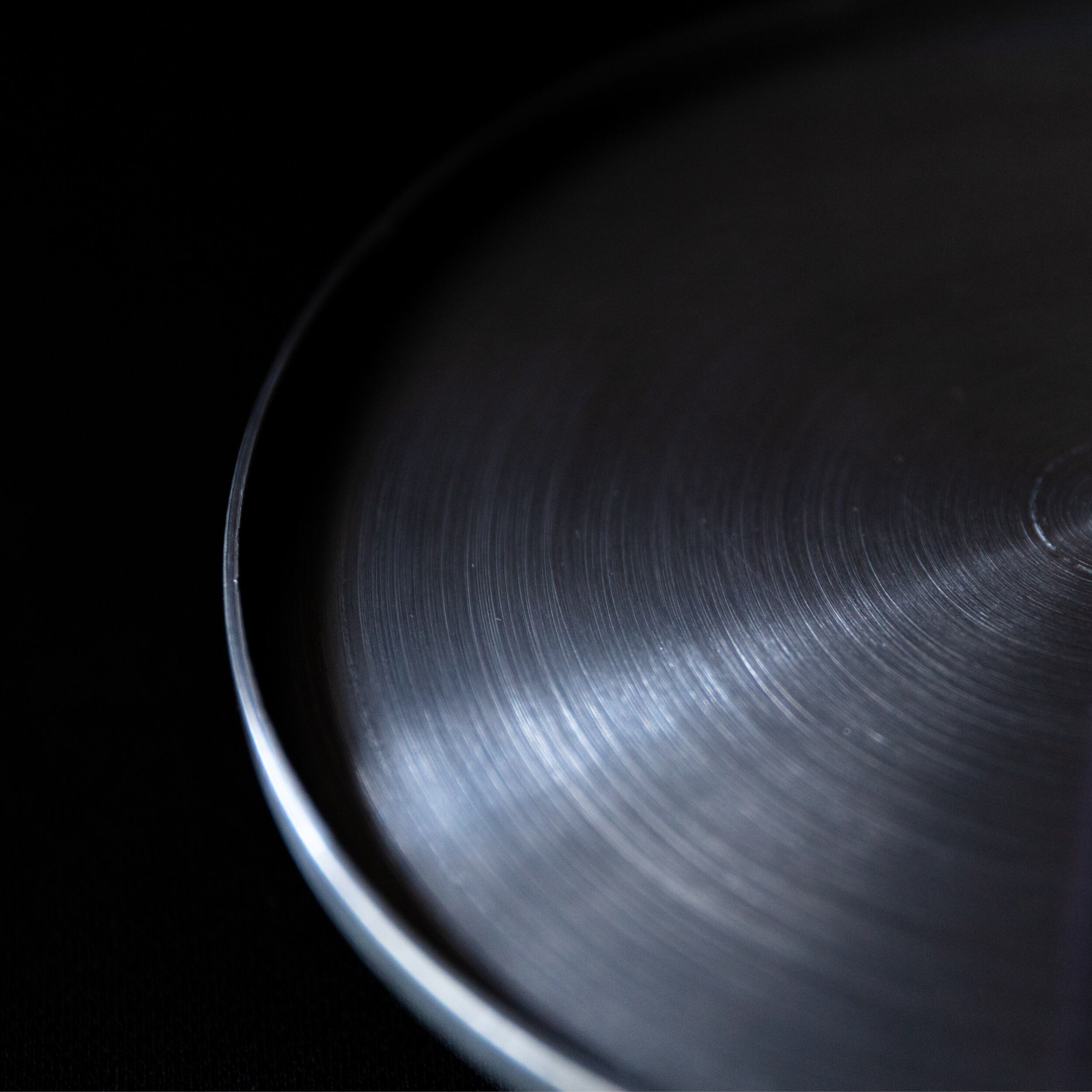 ヘラ絞りのアルミ皿の波紋のような加工痕が